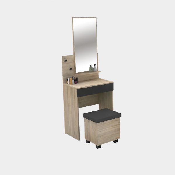 โต๊ะเครื่องแป้ง พร้อมเก้าอี้สตูลเป็นเฟอร์นิเจอร์ ที่จะขาดไม่ได้เลยในห้องนอน หรือห้องแต่งตัว โดยเฉพาะสาวๆ ที่ต้องใช้วางเครื่องสำอาง และต้องการพื้นที่ในการนั่งแต่งหน้า ในการเตรียมตัวก่อนออกจากบ้าน ที่ Inhome Furniture เราจึงออกแบบโต๊ะเครื่องแป้ง ของเราให้ดีไซน์สวยทันสมัย สไตล์โมเดิร์น และมีฟังค์ชั่นพิเศษต่างๆ เก็บเครื่องสำอางได้เยอะและเป็นสัดส่วน ทำให้คุณใช้งานได้สะดวกสบาย รวมถึงเพิ่มพื้นที่ในการวางของ ให้ห้องนอนของคุณเป็นระเบียบยิ่งขึ้น นอกจากนี้โต๊ะเครื่องแป้งของเรายังใช้วัสดุอย่างดี โดยใช้ไม้ปาร์ติเกิ้ลบอร์ด ปิดผิวเมลามีน ปิดขอบอย่างเรียบร้อย เพื่อให้แน่ใจว่าคุณจะไม่ต้องกังวลเรื่องเครื่องสำอางบนโต๊ะเครื่องแป้ง จัดวาง รักษาของรักของคุณได้อย่างเป็นระเบียบ